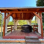 Consisting of a patio and a place for dining, the design is complemented by a stone fireplace and amenities, such as ironing facilities and climate control. Guests may benefit from a sofa set, along with entertainment facilities like a TV with satellite channels. A bathroom features a separate toilet and a shower, while a hair dryer and bath sheets are also provided.